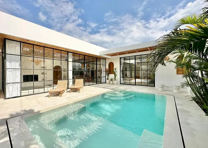 Die Two- Bedroom Luxury Villas Uluwatu, gelegen weniger als 13 Minuten zu Fuß vom Strand von Bingin entfernt, verfügt über einen Swimmingpool, wo Gästen auch eine Terrasse zur Verfügung stehen. Die Villa bietet eine Terrasse und liegt circa 2 Kilometer vom Strand von Uluwatu entfernt.